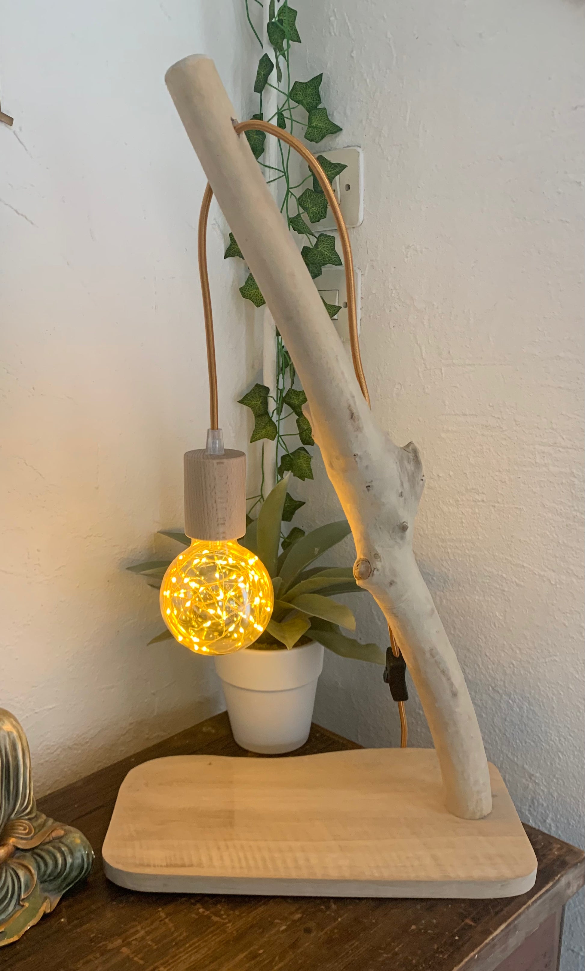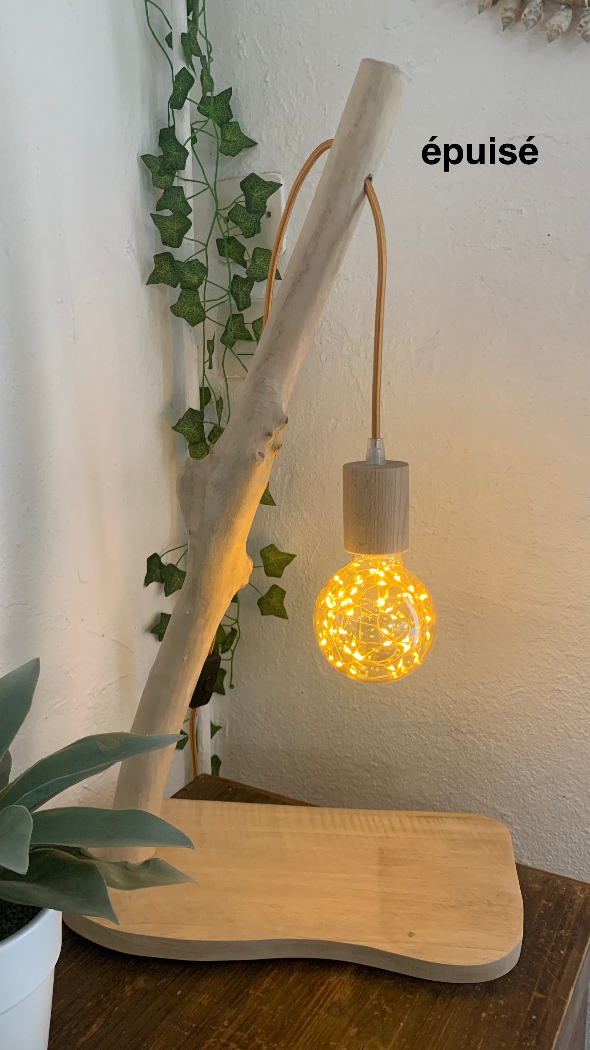 Lampe en bois flotté blanchie naturellement par le soleil sur les plages de Hyères.