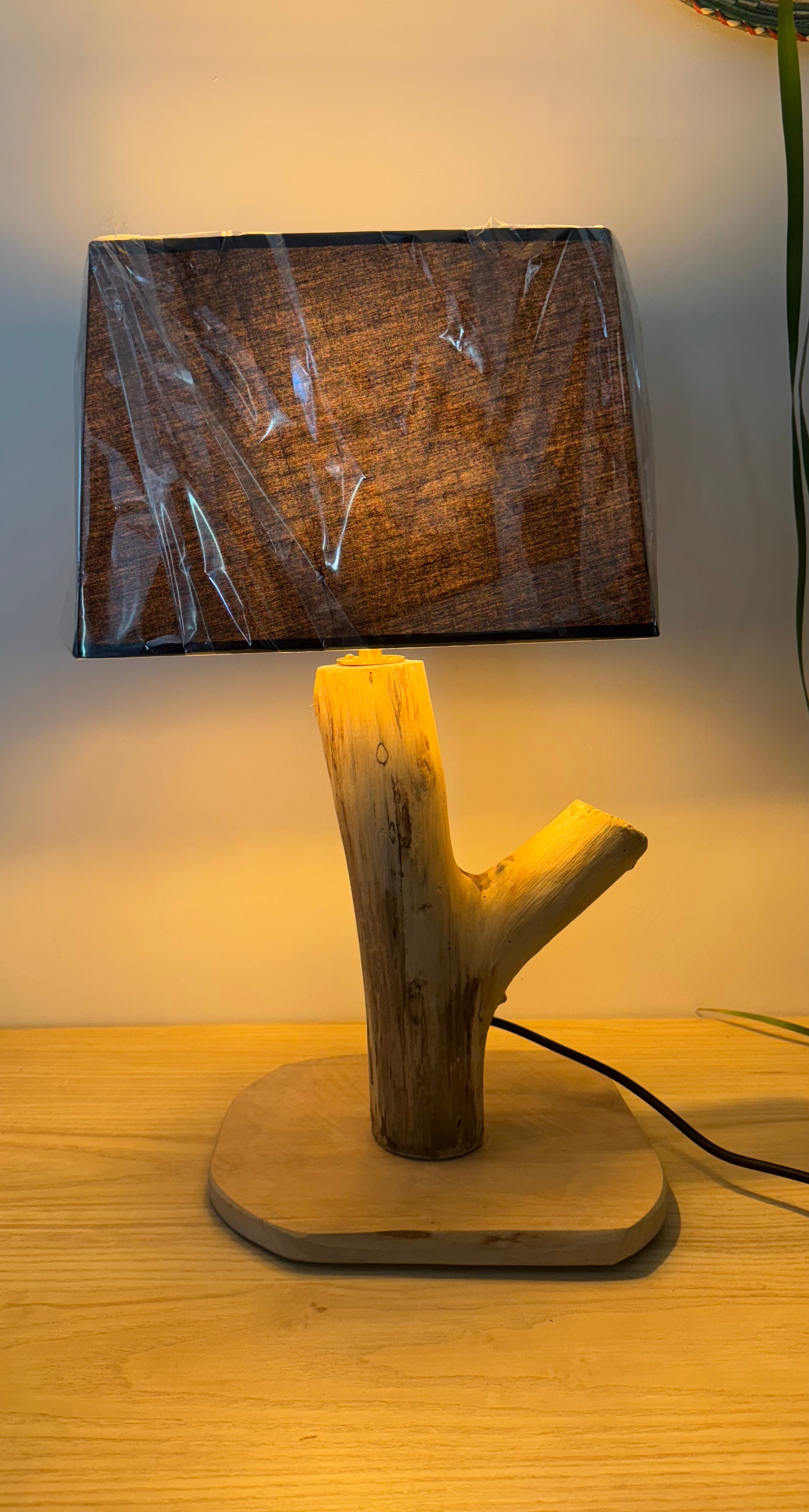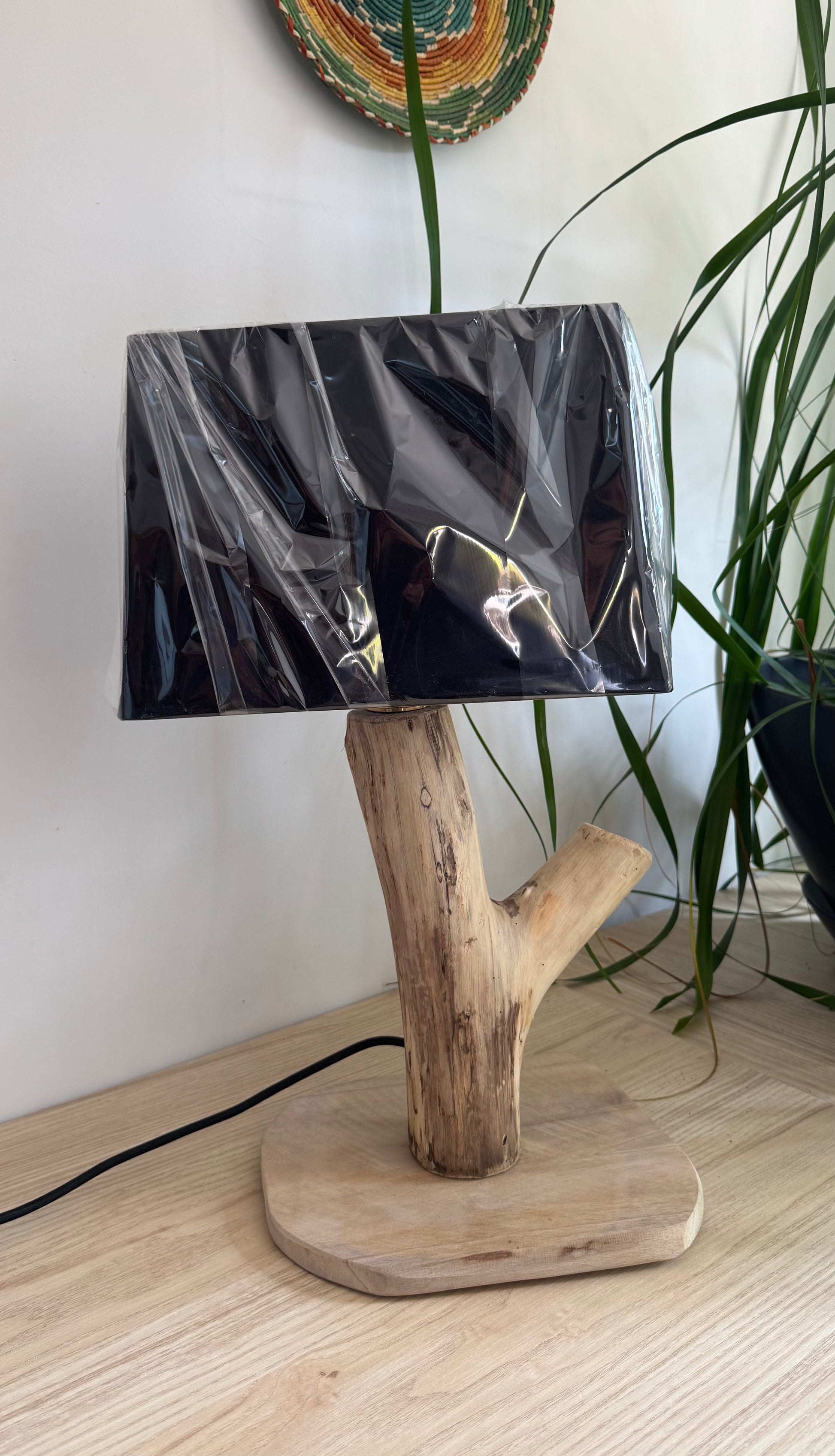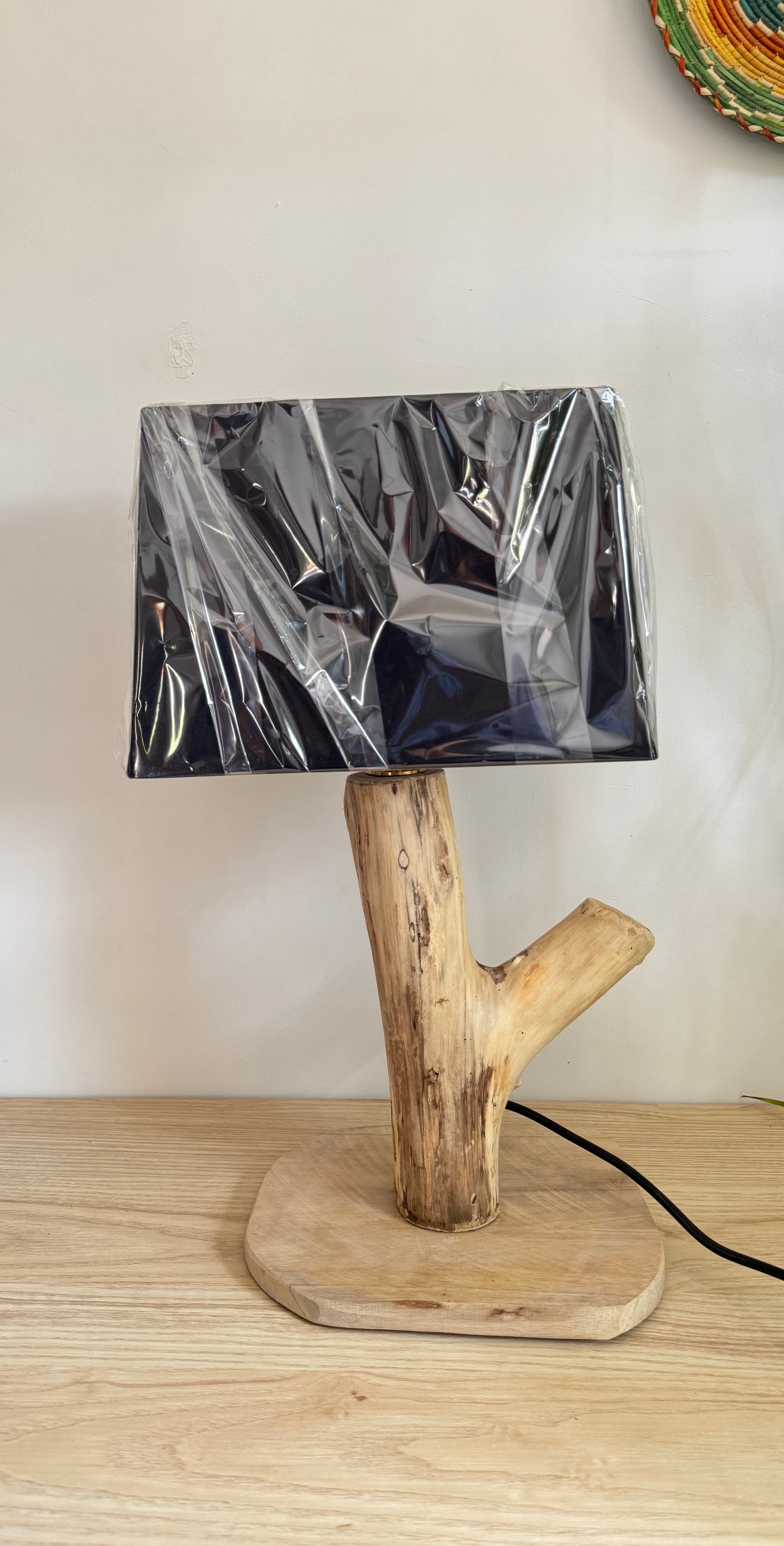 Lampe en bois flotté blanchie naturellement par le soleil sur les plages de Hyères.
