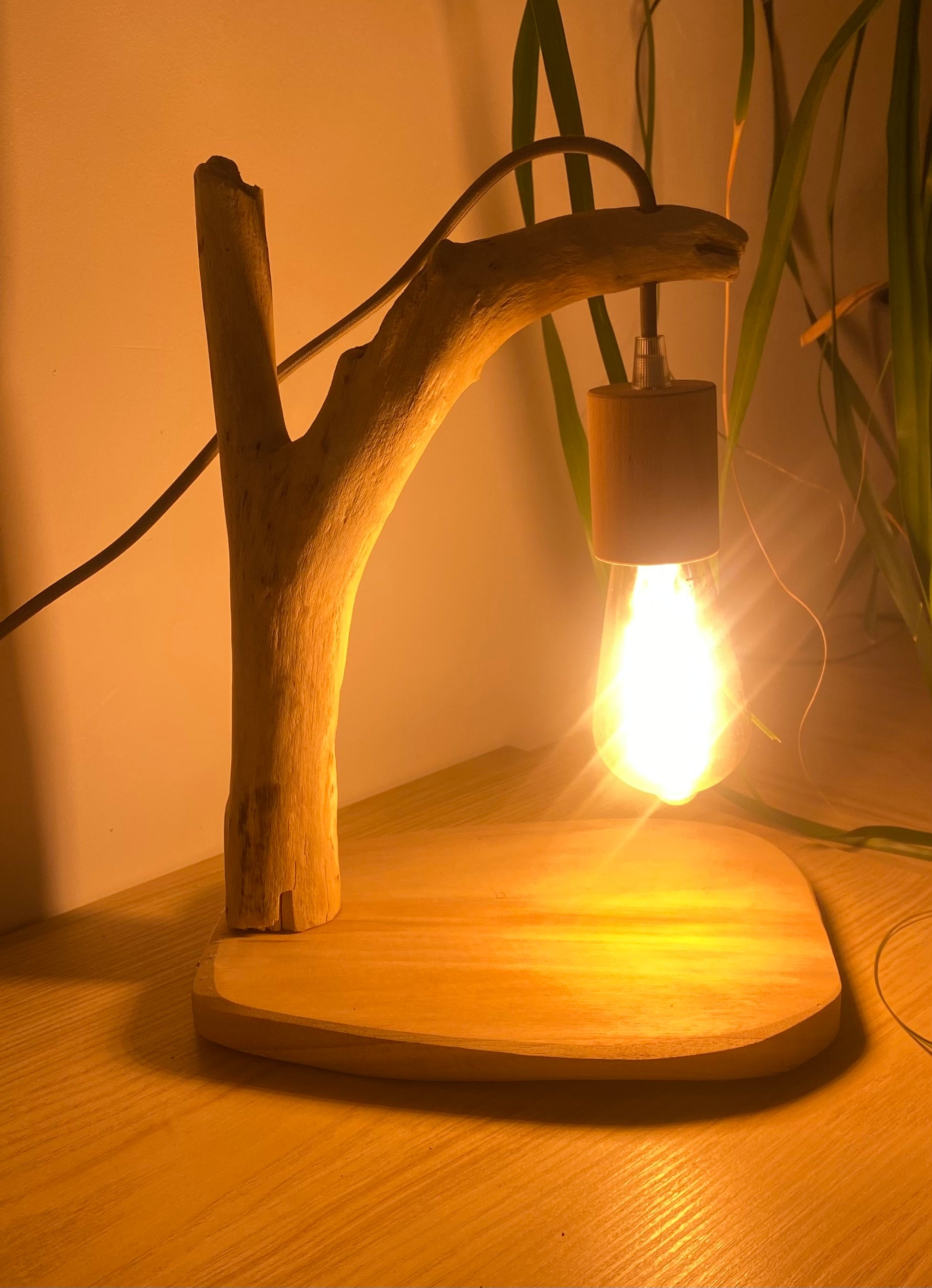 Lampe en bois flotté blanchie naturellement par le soleil sur les plages de Hyères.
