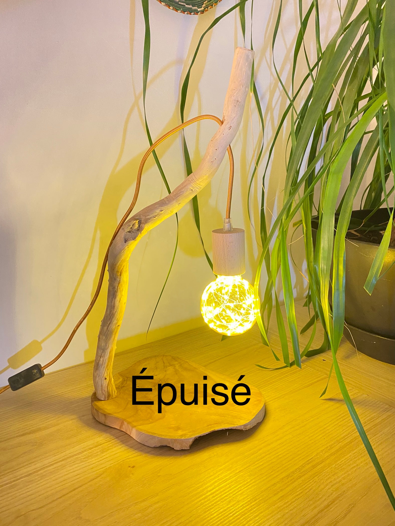 Lampe en bois flotté blanchie naturellement par le soleil sur les plages de Hyères.